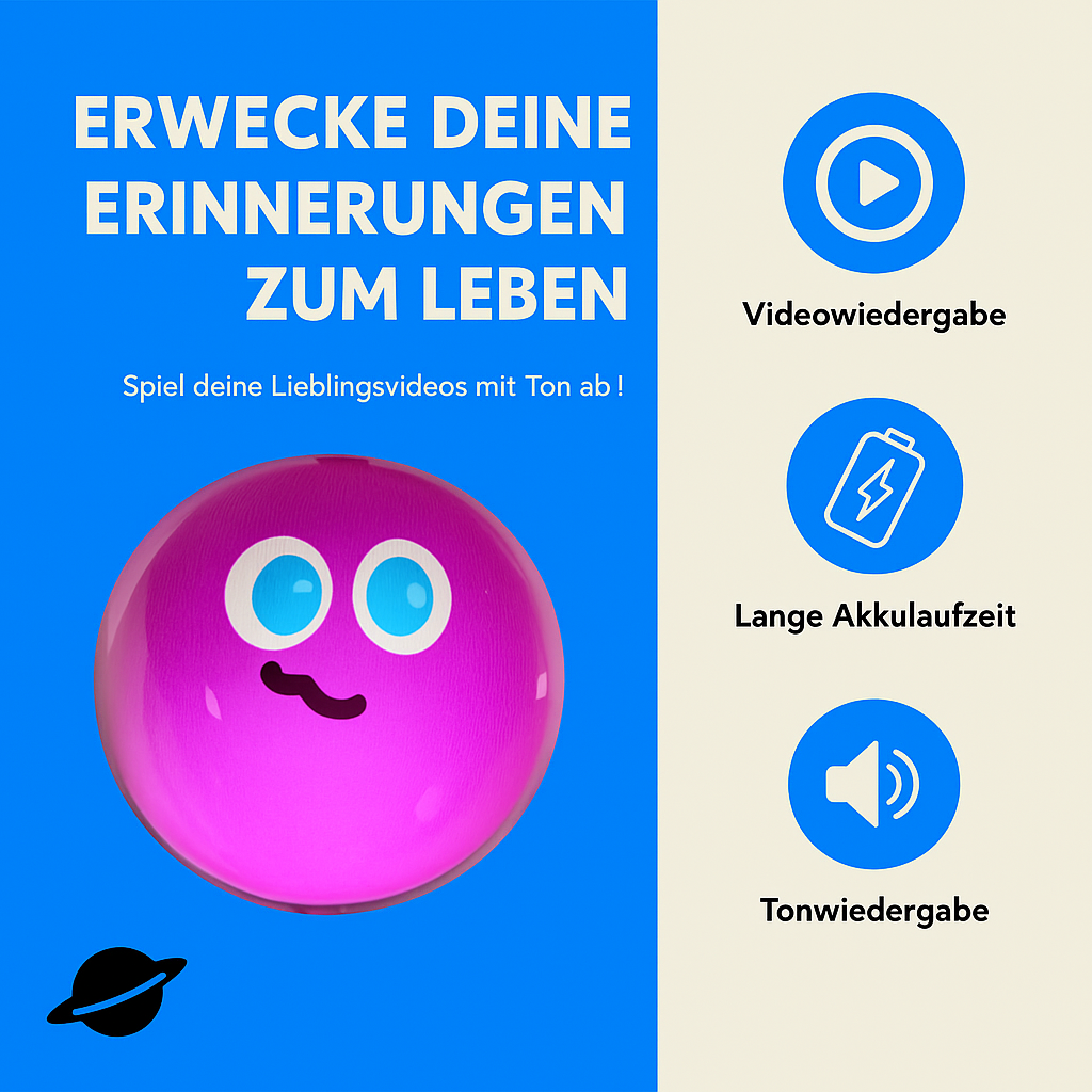 Einschalten, pausieren, zwischen Videos und Bildern wechseln, sogar die Lautstärke regeln – alles mit nur einem Knopf.